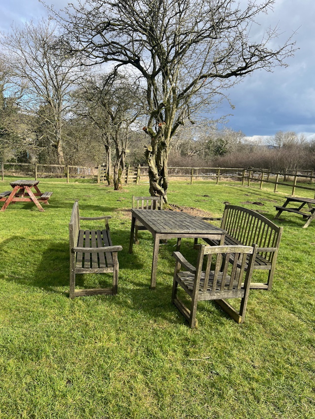The small paddock is next to the car park with picnic tables and is ideal for small tents and we do allow BBQ's and fire pits. £5 each to hire for your stay even if you bring your own.